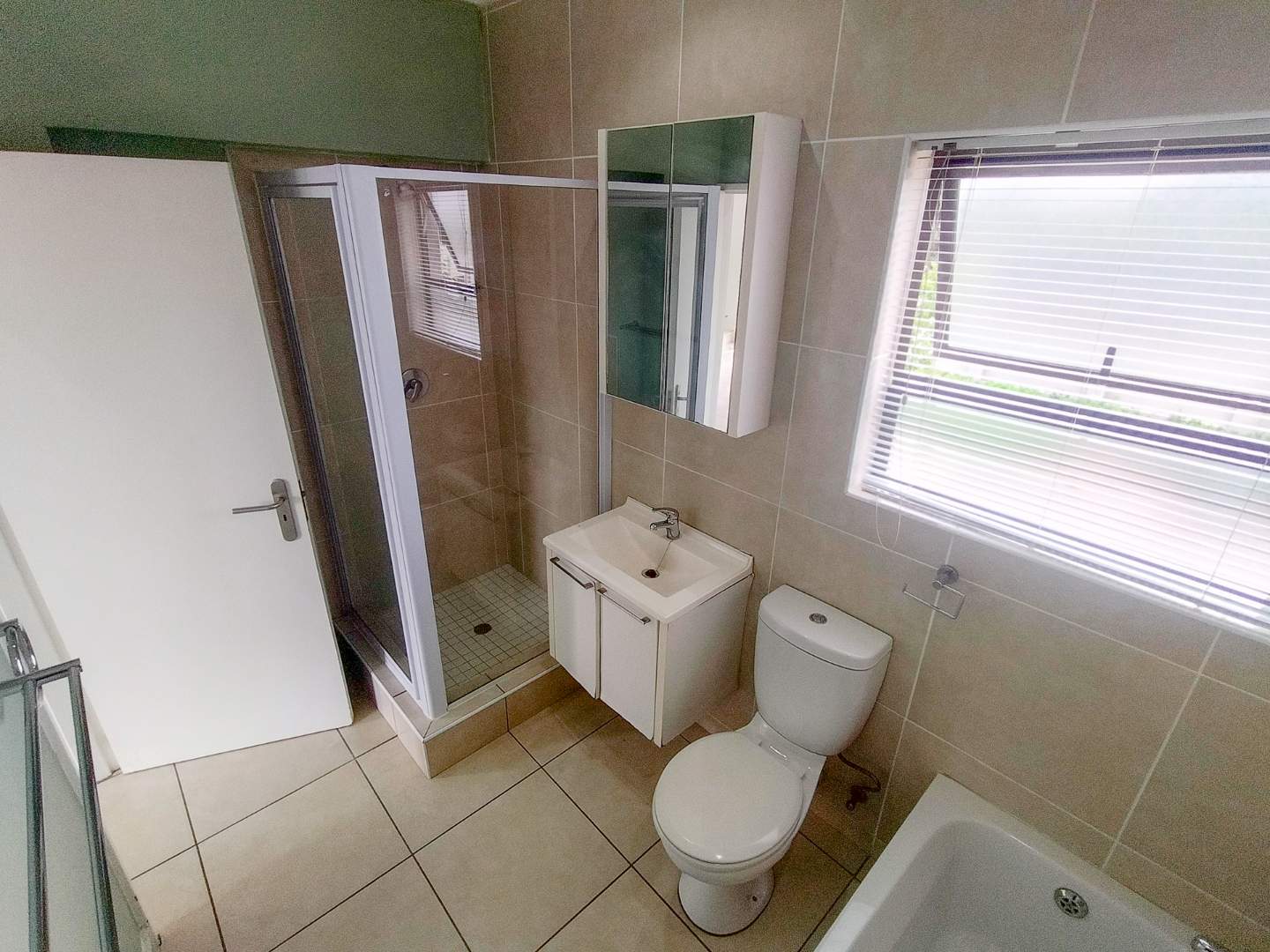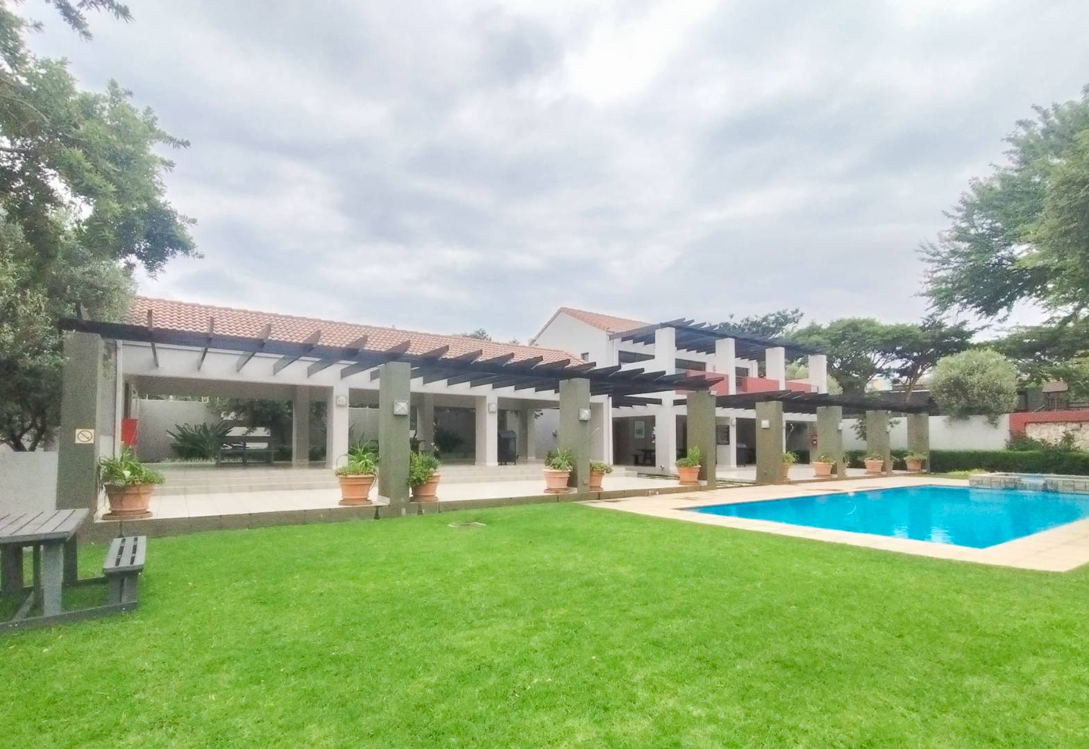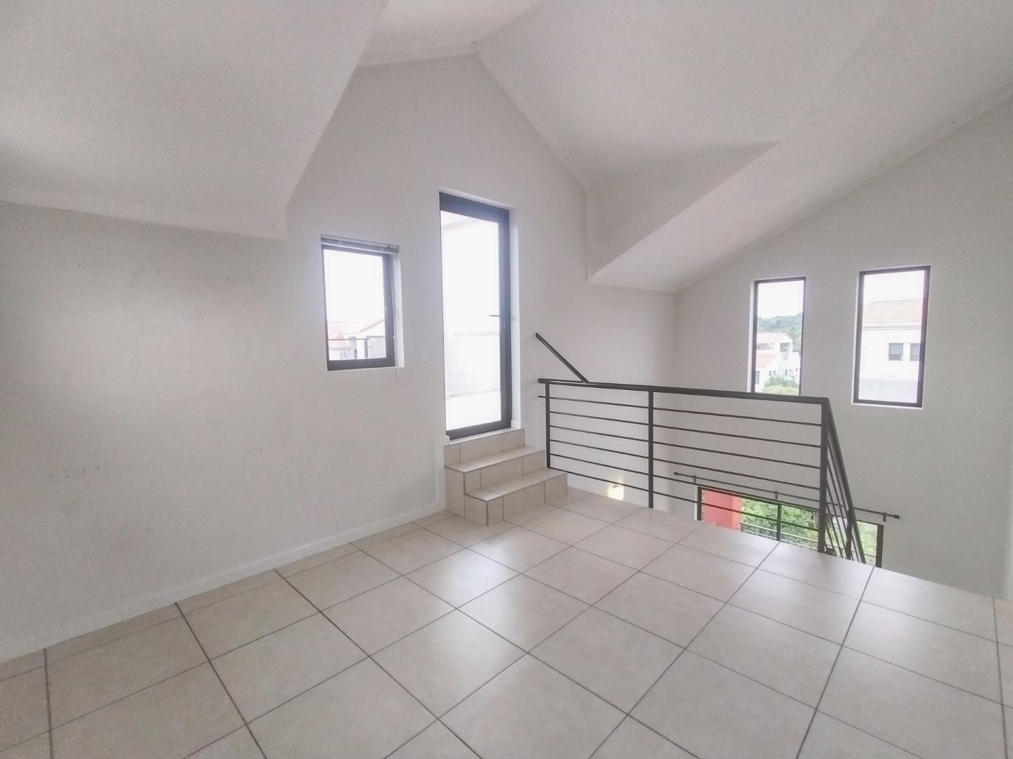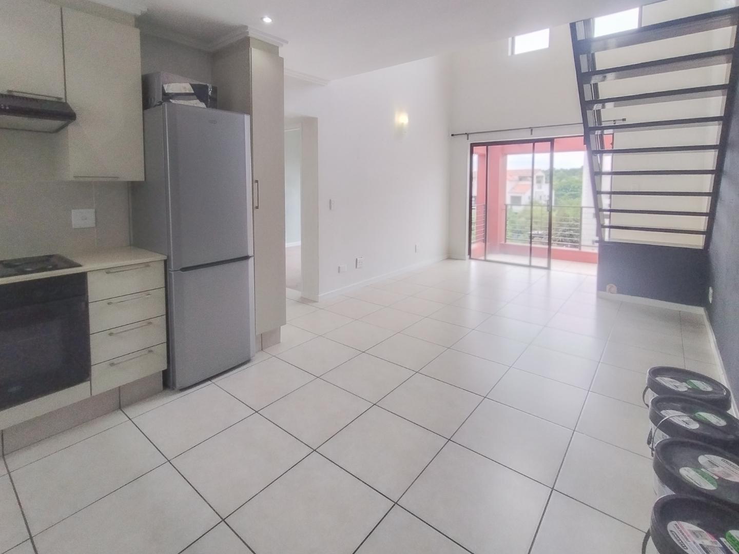 The first level offers a beautiful open-plan living area that opens out onto a balcony. At the heart of the apartment is the modern kitchen with ample cupboard space plus space for two under-counter appliances and a single door fridge. (You may take advantage of the existing fridge, washing machine, microwave and dish-washer or bring your own). The generously sized bedroom is on the same level and has built-in cupboards. There is a full modern bathroom with a bath and a separate shower.