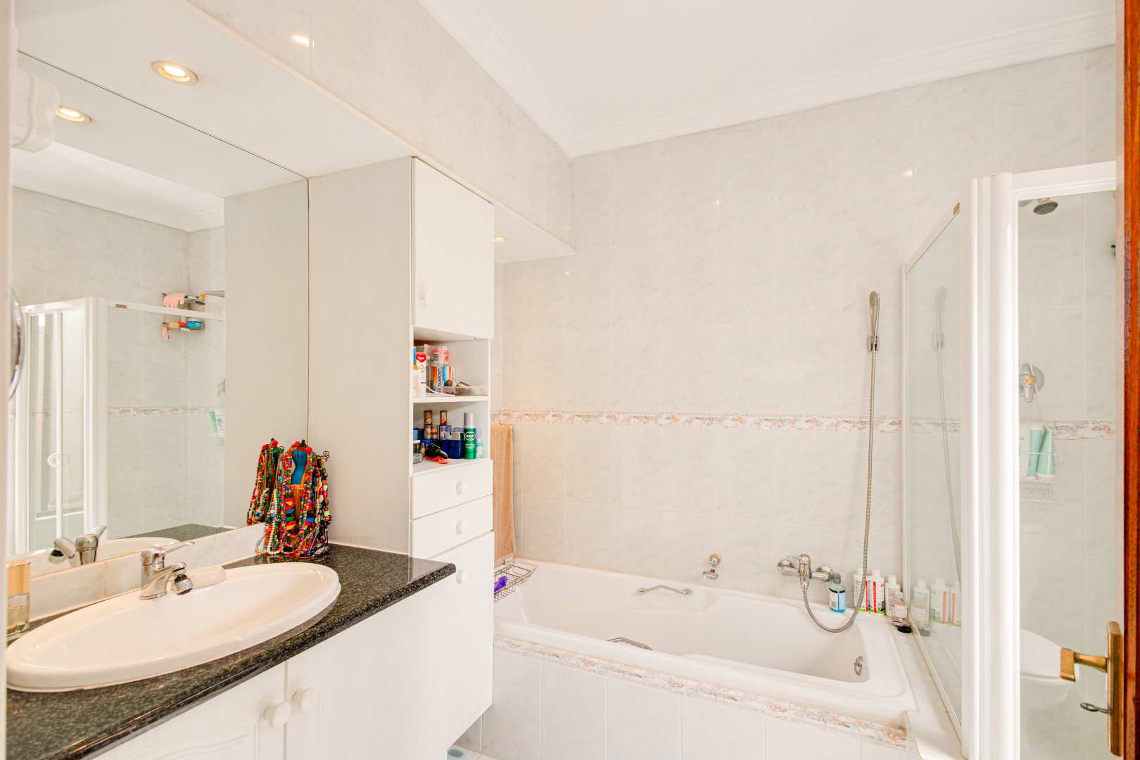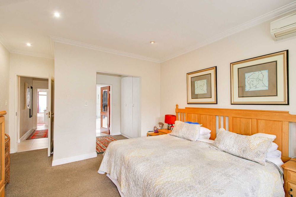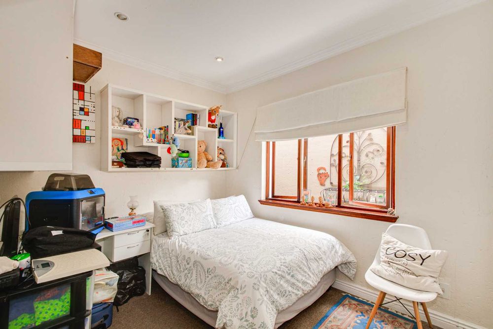The master bedroom is a serene retreat, complete with a luxurious en-suite bathroom and direct access to the garden. Two additional bedrooms share a well-appointed full bathroom, ensuring comfort and convenience for the whole family. A guest toilet and blinds throughout the home add to its thoughtful design.